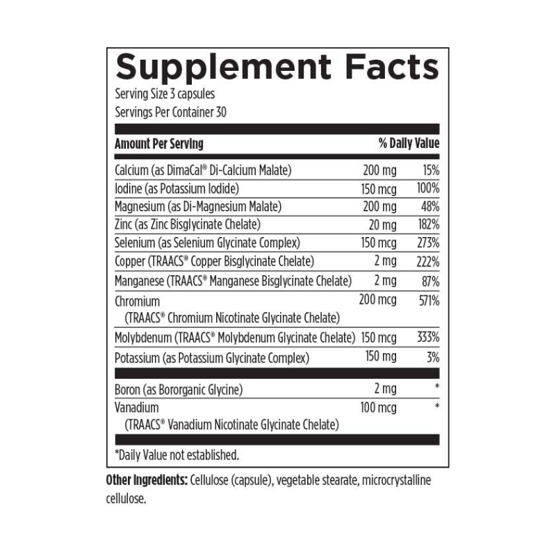 - Chromium (as TRAACS® Chromium Nicotinate Glycinate Chelate)