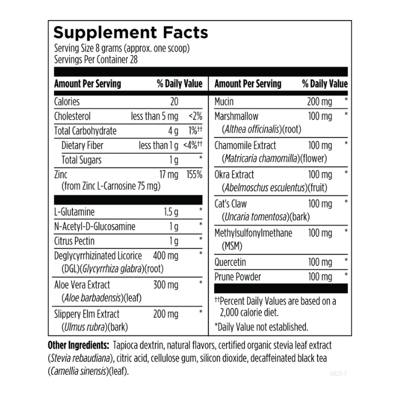 GI Revive® Powder is a meticulously crafted blend of amino acids, botanical extracts, and minerals designed to support the integrity and function of the gastrointestinal (GI) tract. This formula promotes a healthy mucosal lining, aids in maintaining proper intestinal permeability, and supports overall digestive wellness.