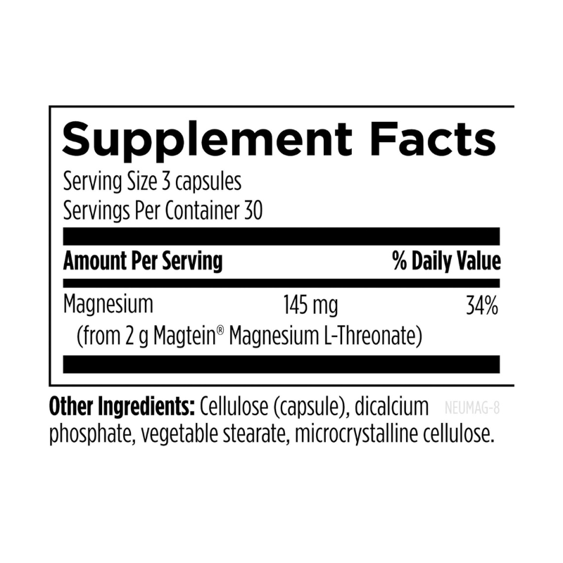NeuroMag™ features Magtein®, a patented form of magnesium L-threonate, designed to cross the blood-brain barrier effectively, enhancing brain magnesium levels to support cognitive function and memory.