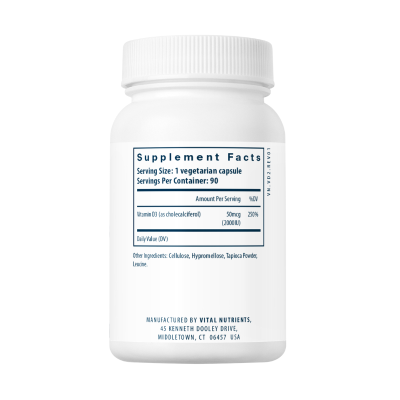 Vital Nutrients' Vitamin D3 2000 IU is a high-quality dietary supplement designed to support bone health and enhance immune function. Vitamin D3, also known as cholecalciferol, is the active form of vitamin D that aids in calcium absorption and helps maintain healthy serum calcium levels, promoting strong bones and teeth.